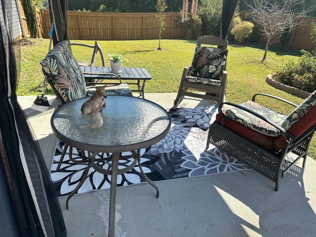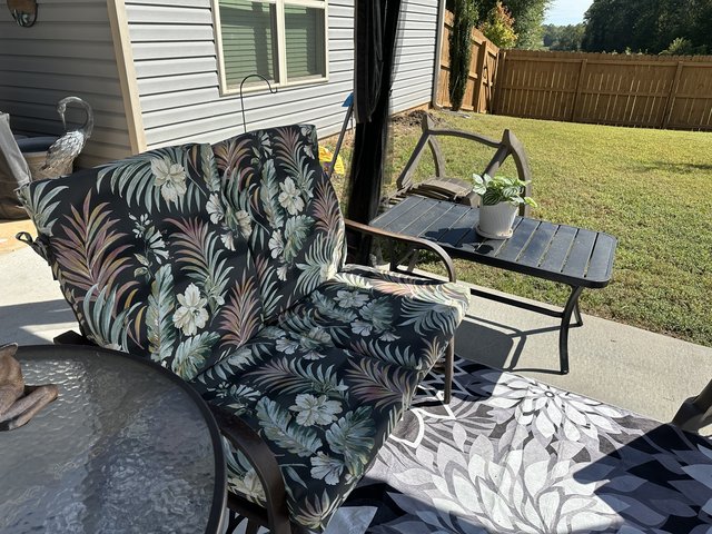 I have 3 more planters of potting soil to empty. I doubt putting any more planters back on the patio. I'm emptying the dirt where the bushes are to fill in a huge armadillo hole. I read they like to dig/hide behind bushes. I bought a can of Scotch Guard fabric protector. It's supposed to protect from sun fade.